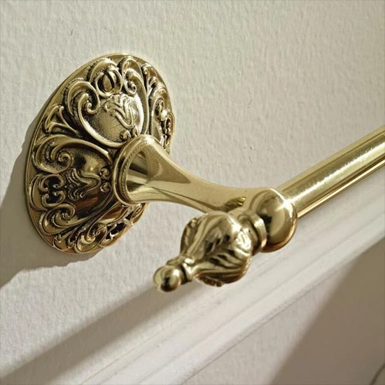 The Flora Wall Mounted Single Towel Rail Holder offers a stunning Italian period style with moder day quality. We recommend pairing alongside other Sbordoni Flora accessories to offer your bathroom a truly luxurious aesthetic. This piece is versatile as it adds charm to both traditional and modern bathroom. Also, it stands out whether in large or compact bathrooms. Pairing alongside light ceramics or deep, rich palettes really allow for this bathroom accessory to pop.